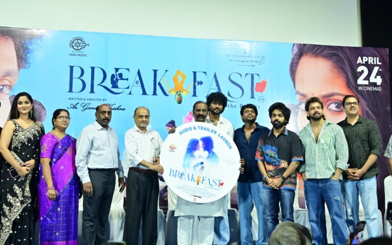 ‘செல்லமே’, ‘ஆனந்த தாண்டவம்’ படங்களை இயக்கிய காந்தி கிருஷ்ணா இயக்கத்தில், கிரிஜா வரதராஜ் தயாரிப்பில், நடிகர்கள் ராணவ், ரோஸ்மின், சம்பத்குமார், கஸ்தூரி, கிருத்திக் மோகன் உள்ளிட்டப் பலர் நடித்திருக்கும் திரைப்படம் ‘பிரேக்ஃபாஸ்ட்’. இந்த மாதம் 24 ஆம் தேதி வெளியாக இருக்கும் இந்தப் படத்தின் இசை வெளியீட்டு விழா நடைபெற்றது.