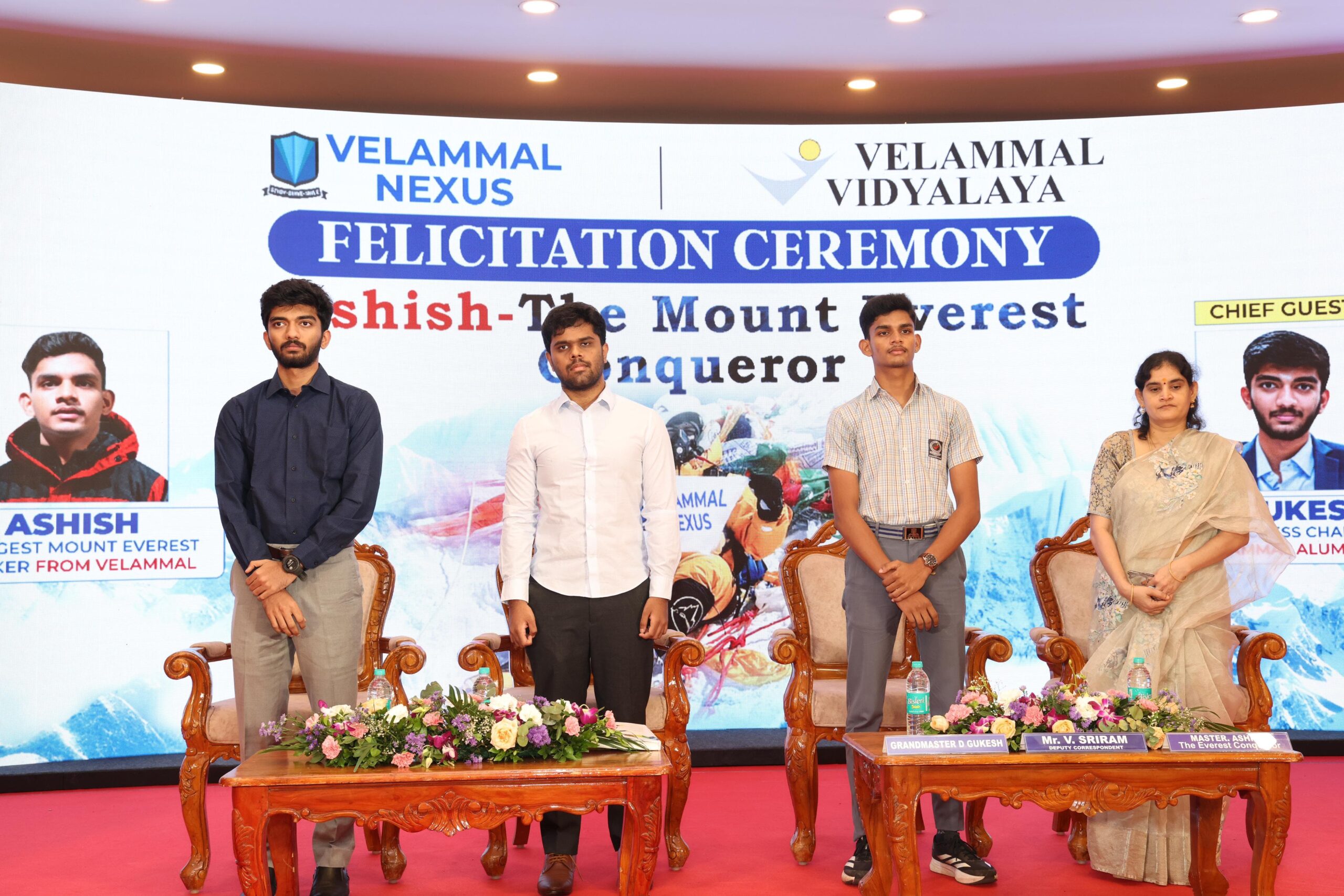 வேலம்மாள் நெக்ஸஸ் அமைப்பின் சார்பில், ஏவரெஸ்ட் சிகரம் வெற்றிகரமாக ஏறிய மாணவர் ஆஷிஷ் அவர்களை, மிகச் சிறப்பான நிகழ்ச்சியில் கௌரவித்தது.
