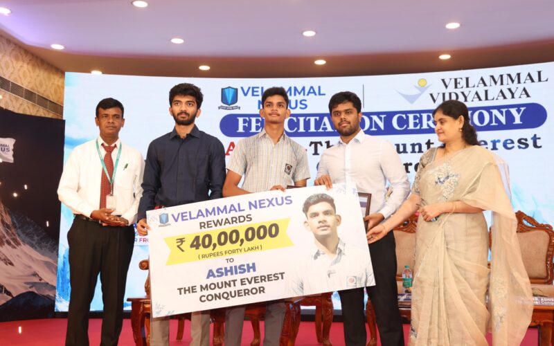 எவரெஸ்ட் சிகரம் எட்டிய வேலம்மாளியன் ஆஷிஷ் வேலம்மாள் நெக்ஸஸ் சிறப்பாக கௌரவித்து – 40 லட்சம் ரொக்க பரிசு வழங்கியது