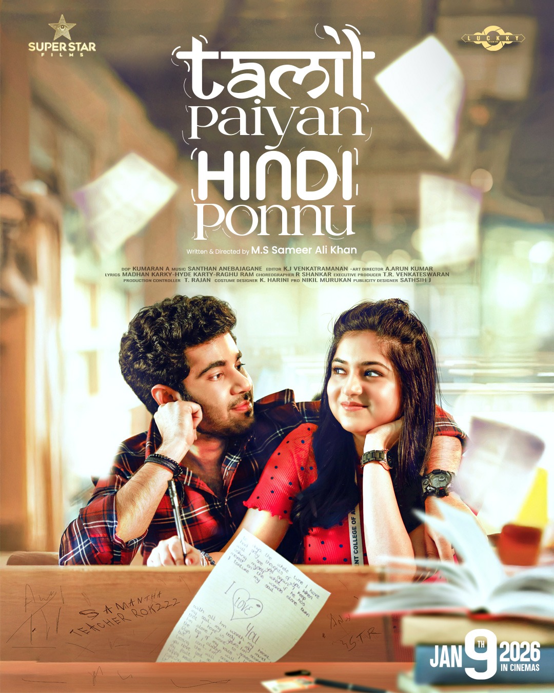 சூப்பர் ஸ்டார் ஃபிலிம்ஸ் பேனரில் தயாரிக்கப்படும் கலகலப்பான காதல் கதையான ‘தமிழ் பையன் இந்தி பொண்ணு’ பொங்கல் வெளியீடாக ஜனவரி 9 அன்று திரையரங்குகளில் ரிலீஸ் ஆகிறது. இதை அறிவிக்கும் விதமாக படத்தின் இரண்டாம் பார்வையை (செகண்ட் லுக் போஸ்டர்) படக்குழுவினர் வெளியிட்டுள்ளனர்.