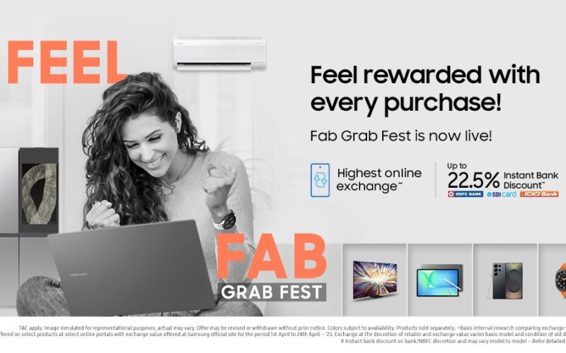 Samsung, India’s largest consumer electronics brand, is turning up the heat this summer with the return of its blockbuster sale — Fab Grab Fest! Kicking off on May 1, this much-anticipated shopping extravaganza brings sizzling, limited-time deals on a wide range of Samsung’s cutting-edge products, available exclusively on Samsung.com, Samsung Shop App and Samsung Exclusive Stores.